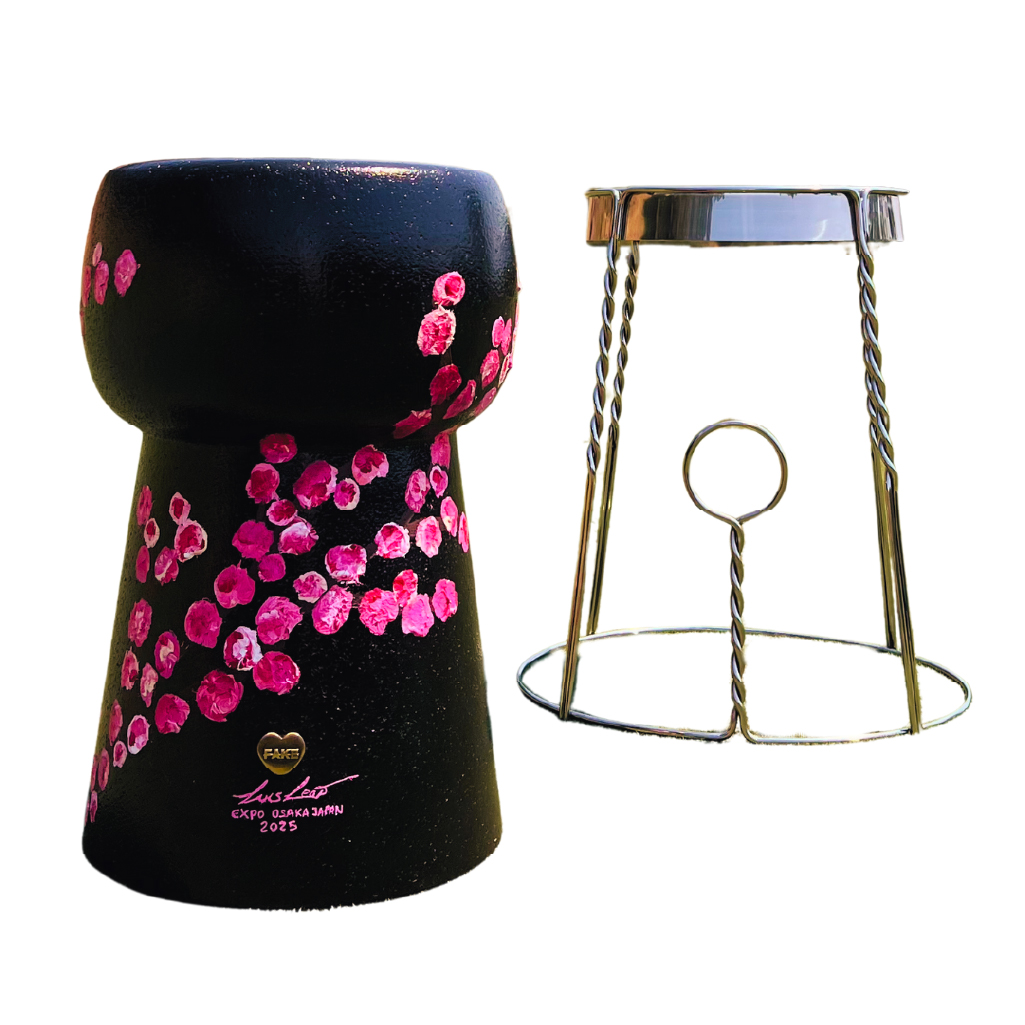 The Champagne Side Table, inspired by an oversized champagne cork, combines a robust cork body with an elegant metallic structure. Evoking celebration and luxury, it blends natural and industrial design. Made from sustainable cork, it adds warmth and texture, offering a unique, celebratory piece perfect for premium interior spaces.